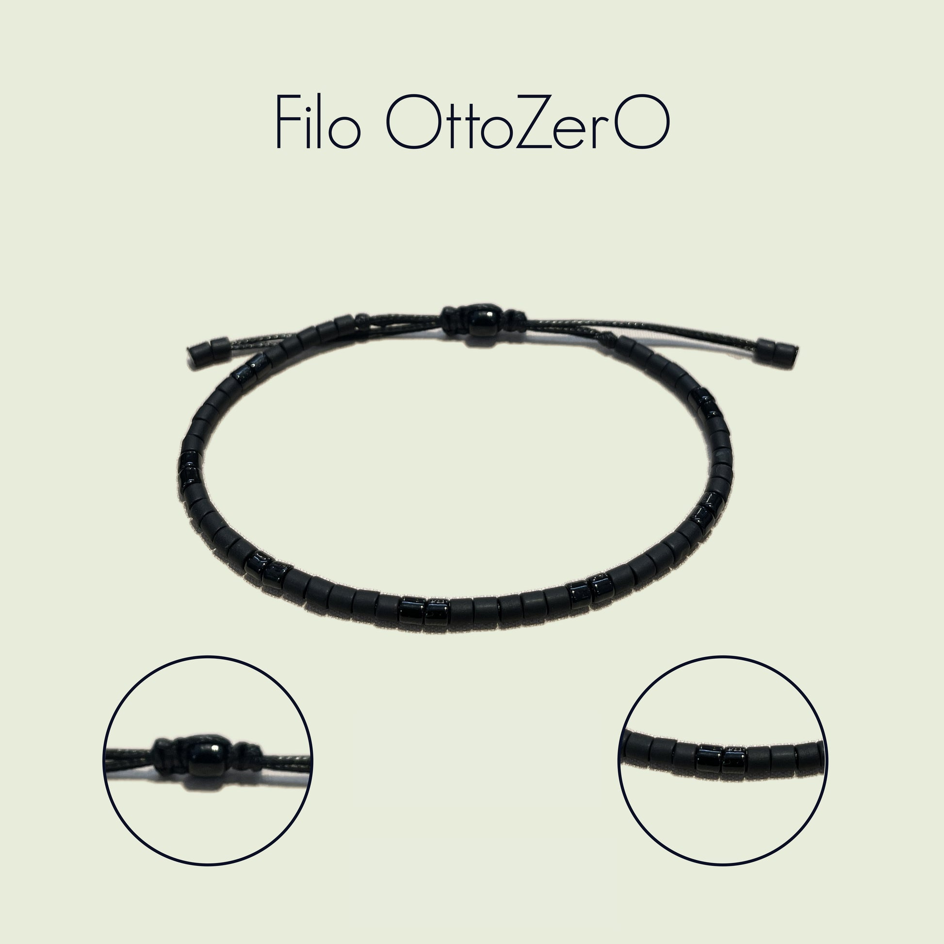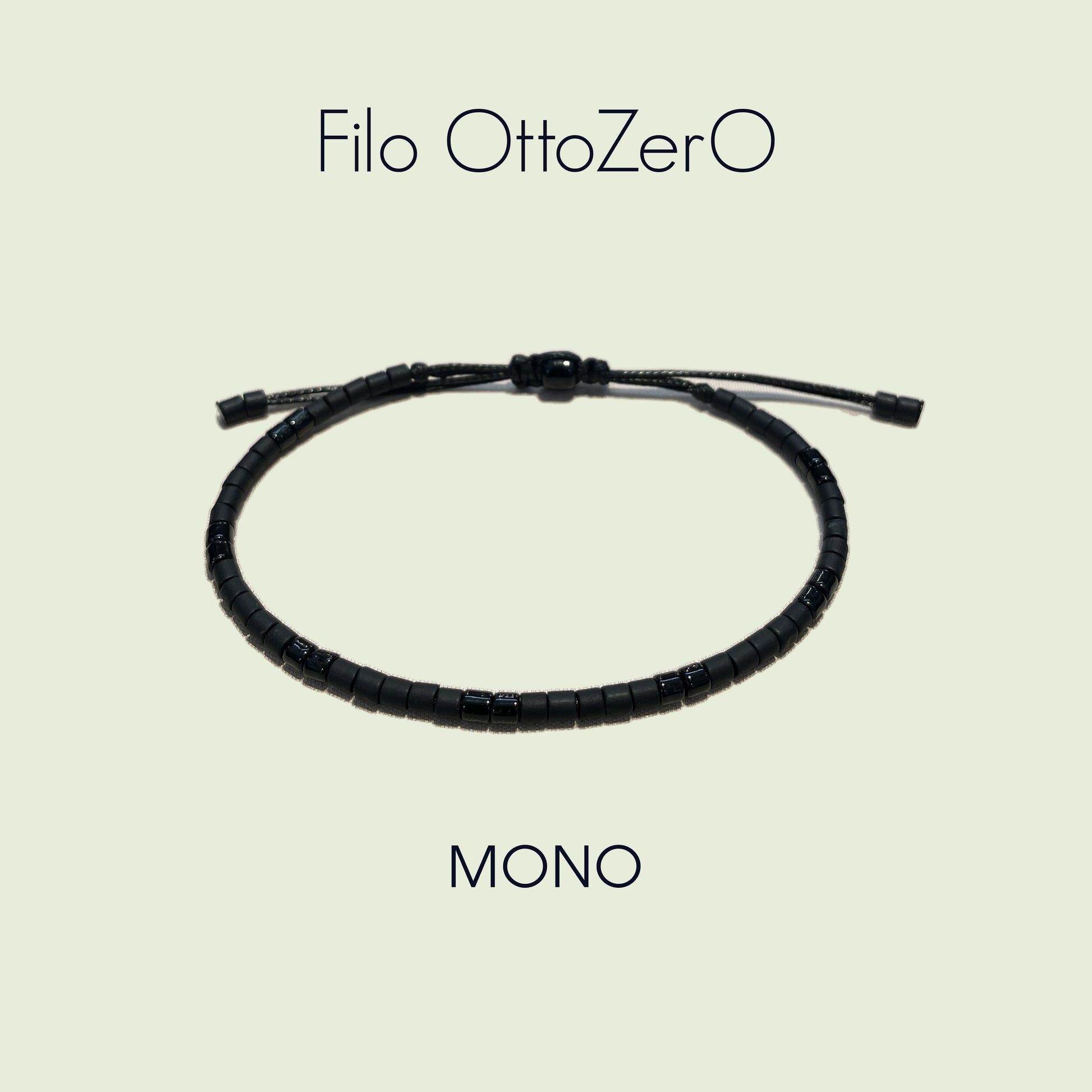 Il modello MONO della linea Filo OttoZerO è costruito esclusivamente con perline Miyuki delica 8/0,disposte in sequenza continua per creare un senso grafico essenziale e moderno.