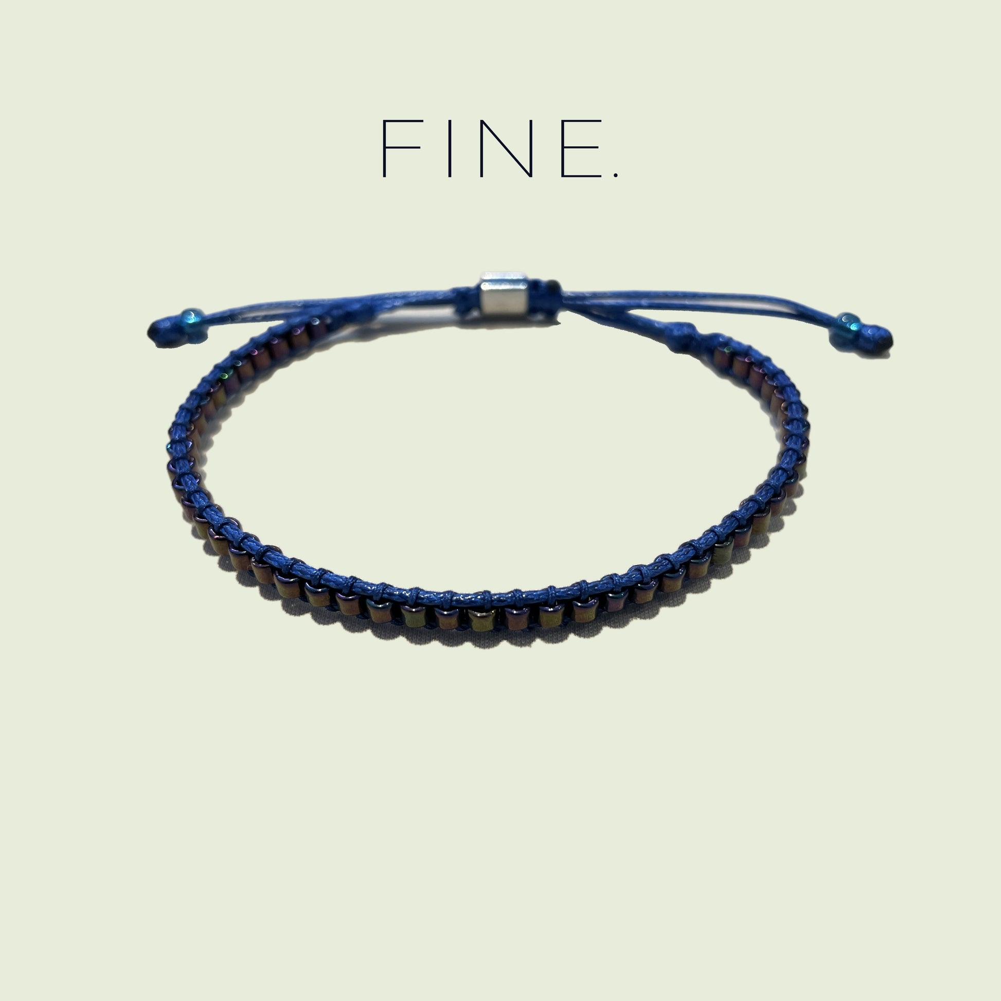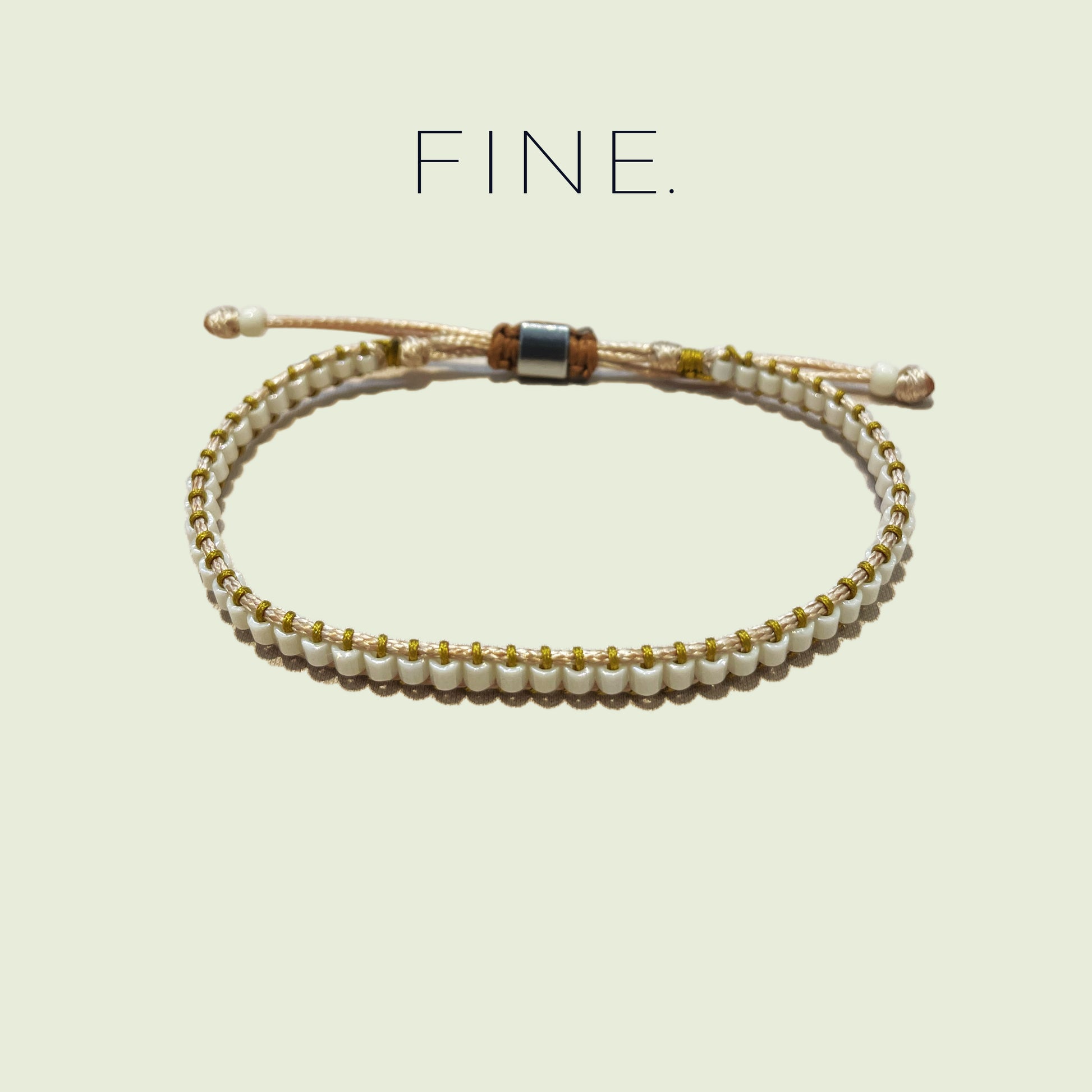 Un bracciale costruito su tre fili portanti, con perline Miyuki inserite una a una per creare una linea continua, pulita, essenziale.